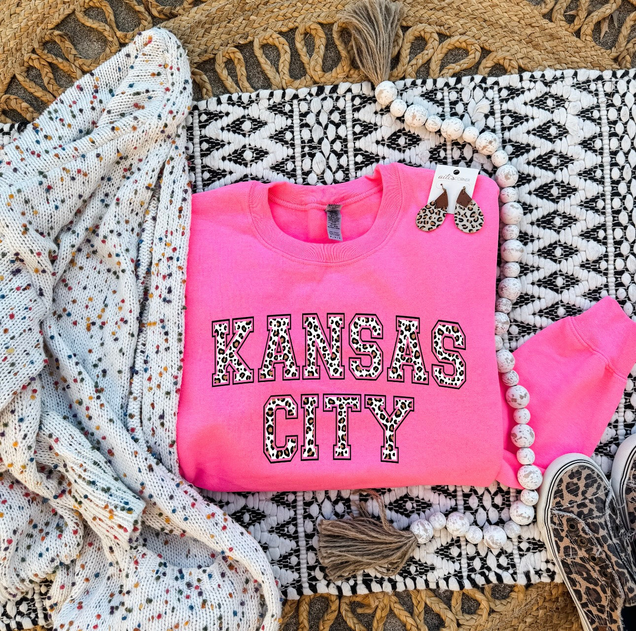 Brown Leopard Kansas City Hot Pink Sweatshirt