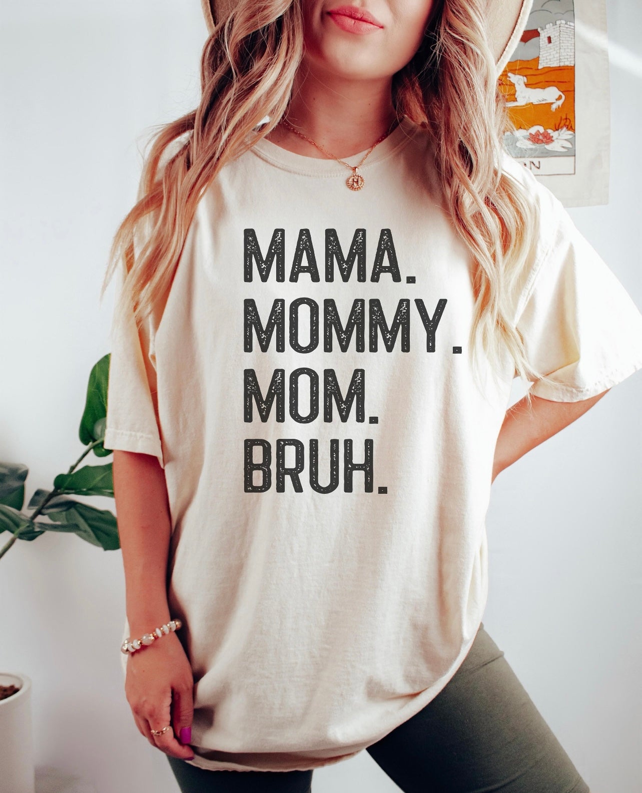 Mama. Mommy. Mom. Bruh Natural Tee