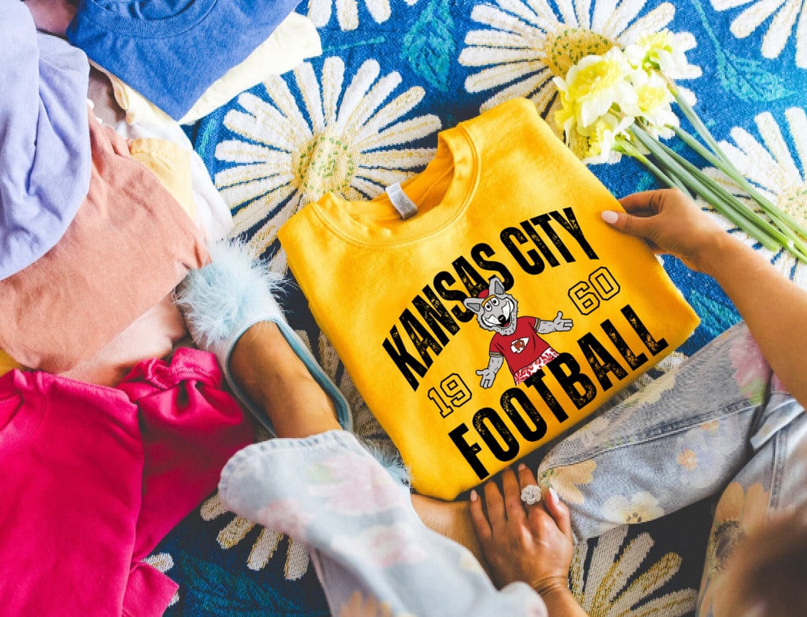 Black Distressed Gold Kansas City Football Wolf 1960 Gold Sweatshirt