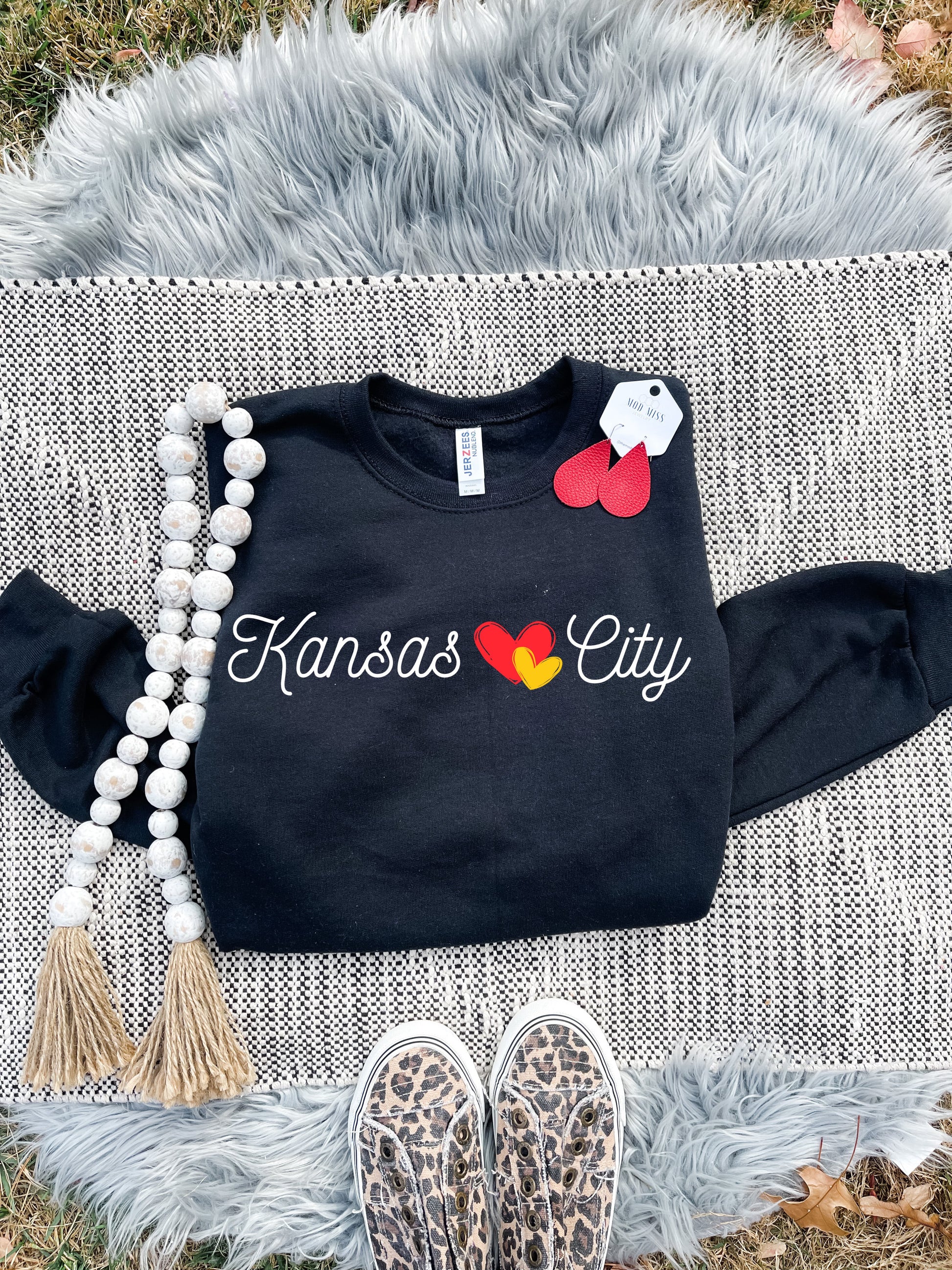 Skinny Script Kansas City Double Hearts Black Sweatshirt