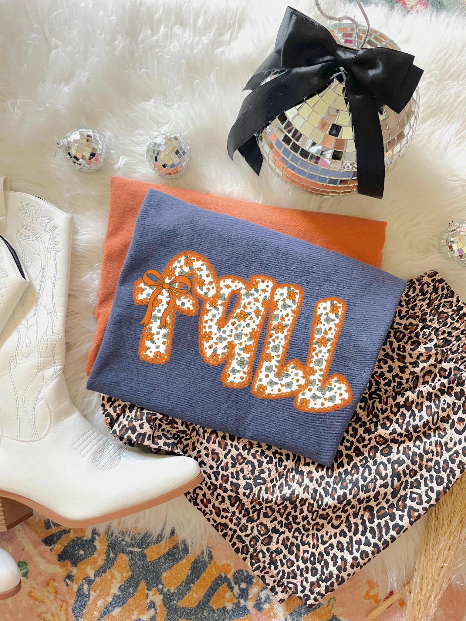 Ditsy Floral Fall With Bow Blue Jean Tee