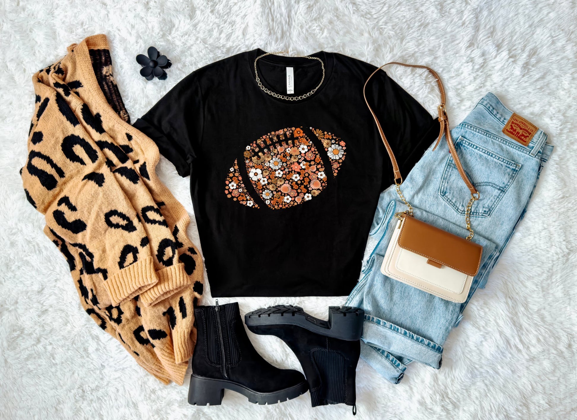Floral Football Black Tee