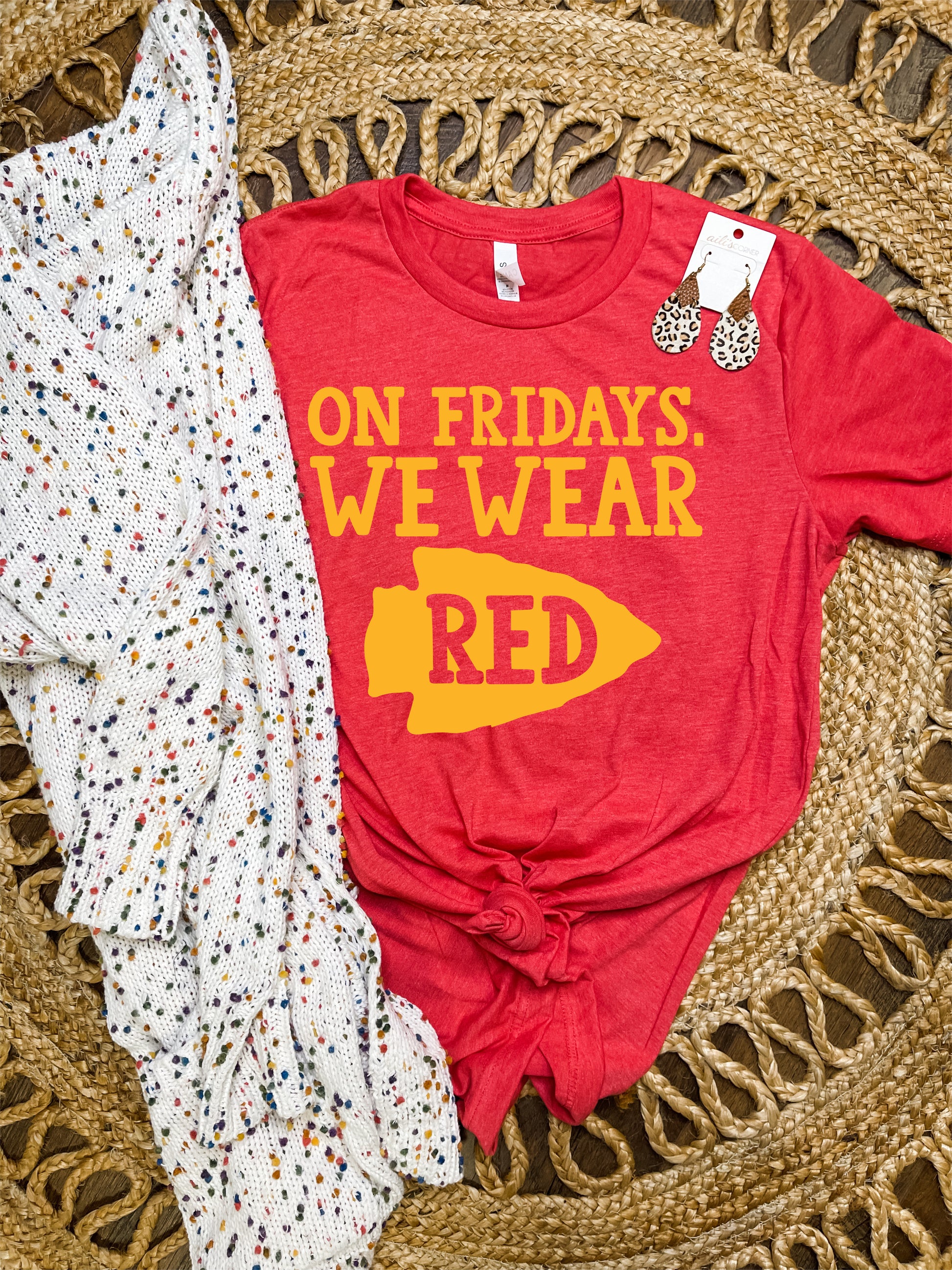 Gold Arrowhead On Fridays We Wear Red Heather Red Tee