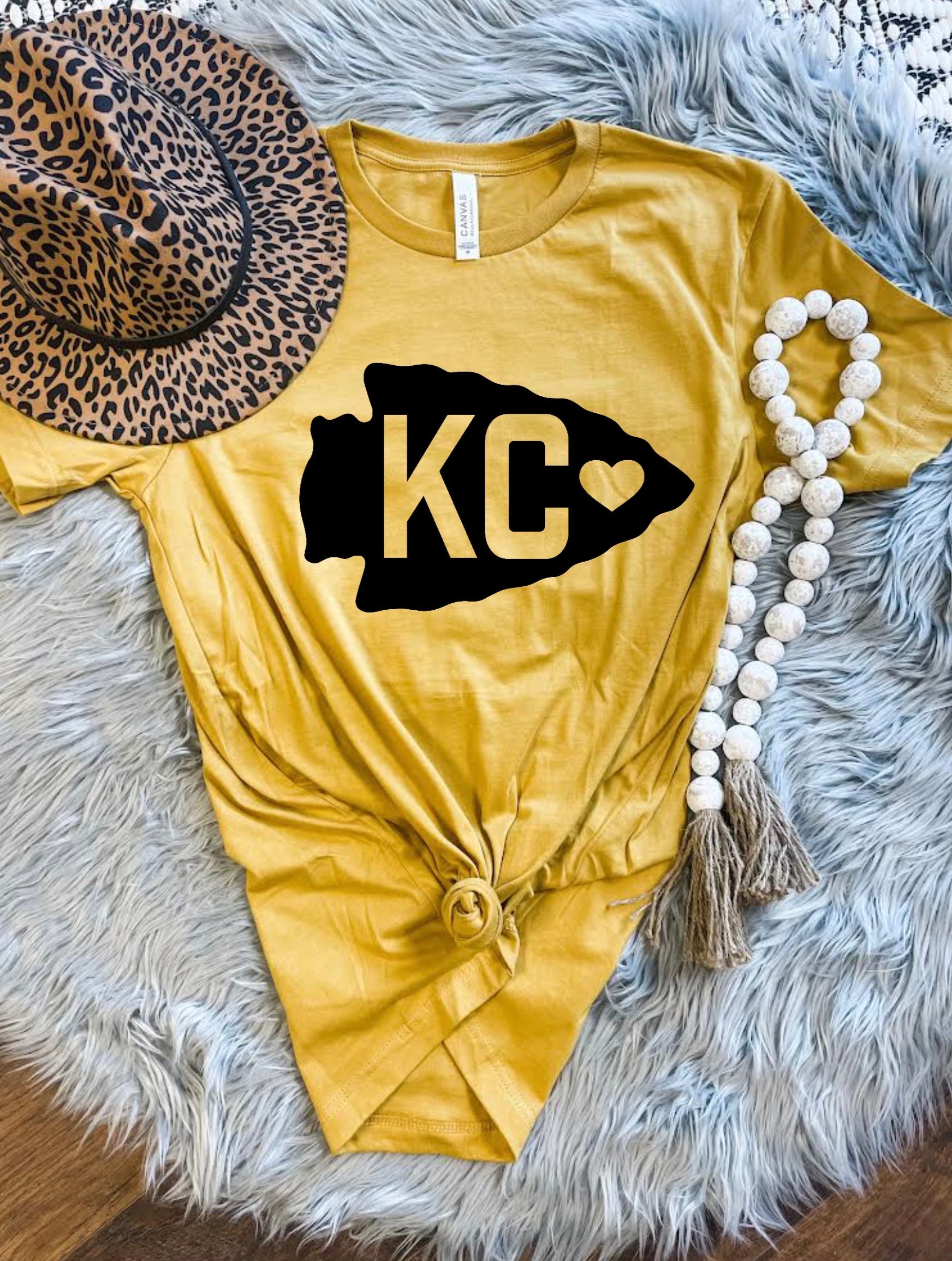 KC Heart Black Arrowhead Mustard Tee