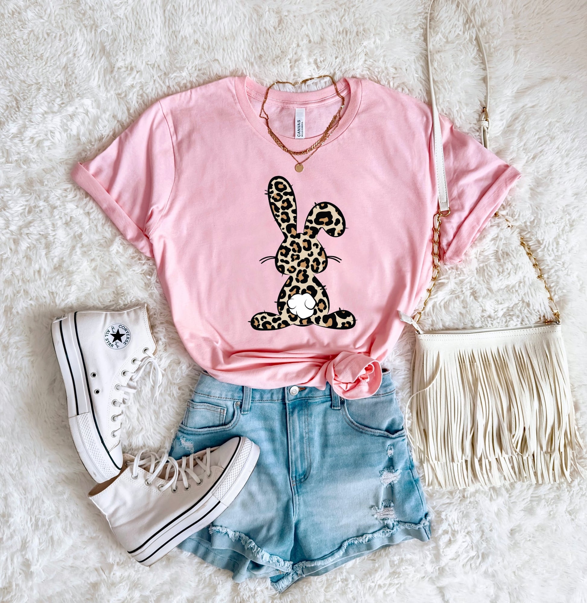 Leopard Bunny Light Pink Tee